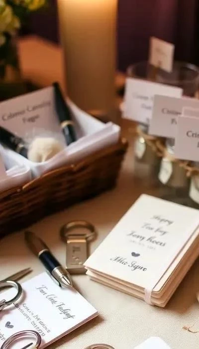 - Персонализированные подарки: Кружки, брелоки, ручки с именами гостей и датой свадьбы.